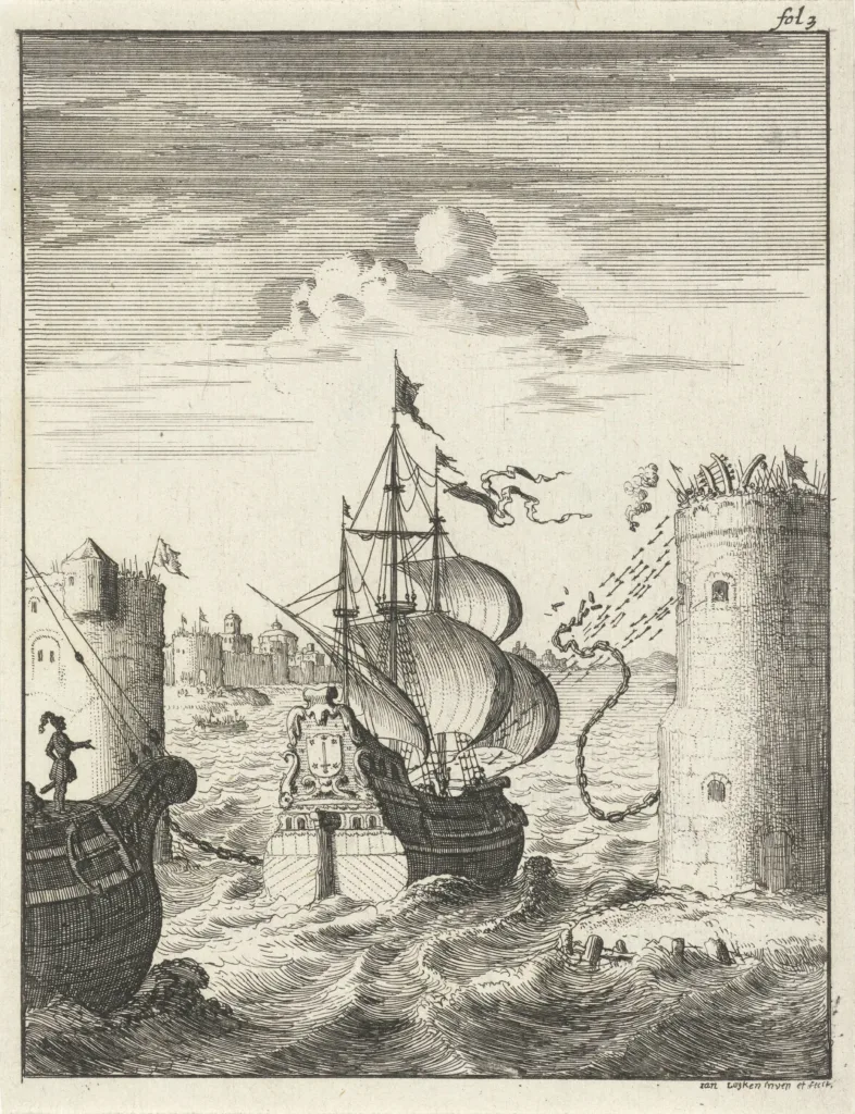 Dese Morgen ten 7 Uren, quam hier in ’t ghesichte de Avantguarde van de Nederlandtse Vloot, komende uyt den Noorden, met een harden Noordt-oosten Windt, wesende ten 11 Uren de Arriergarde dese Stadt al ghepasseert