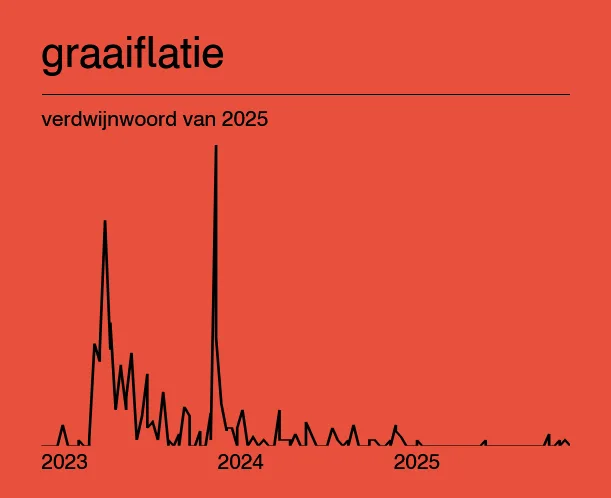 Graaiflatie werd in 2023 nog verkozen tot Woord van het Jaar. Het is een leenvertaling van het Engelse greedflation en raakte dat jaar in zwang toen bleek dat multinationals hoge winsten boekten door stevige prijsstijgingen door te rekenen aan consumenten. In 2024 kwam graaiflatie nog regelmatig voor in de kranten, maar in 2025 werd het nauwelijks nog gebruikt. Voorbeelden van andere woorden die in 2025 een sterke daling in gebruik doormaakten waren twitteraar, natuurherstelwet, flitsbezorger en energieplafond.